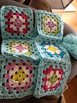 Tijdens het in elkaar haken van de granny squares van dit kussen, bedacht ik dat ik het mooier zou vinden als de grannies op een 'luchtige' manier aan elkaar gehaakt zouden worden.